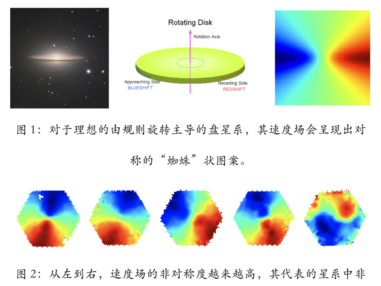 Figure 3. Feng et al. 2022 proposed an ideal disk galaxy dominated by rotation. The purple arrow represents the axis of rotation, with blue-shifted and red-shifted components on either side.