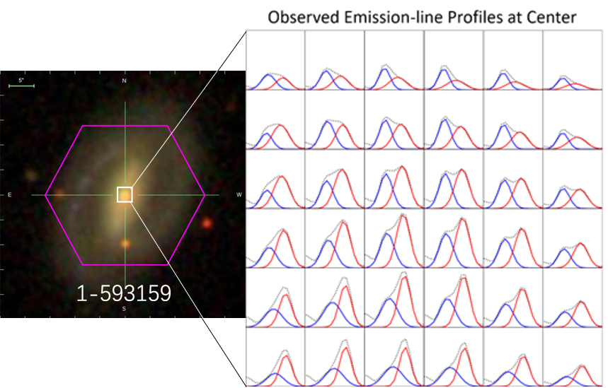 However, after decades of in-depth research, astronomers have found that the characteristics of double-peaked narrow emission lines at the center of galaxies is widespread, and its mechanism of generation is far beyond the dual AGNs rotating with each other; the high-speed rotating gas disk and the gas outflows caused by AGNs may both produce double-peaked features. In recent years, with the development of new astronomical instruments and technologies, the Integrated Field Spectroscopy (IFS) technology based on the Integrated Field Spectrometer has played a very important role in studying double-peaked narrow emission lines. Due to the fact that the IFS also provides spatially resolved spectral information of galaxies, astronomers can explore the origin of double-peaked features in galaxies by comparing the changes in their characteristics in different positions.